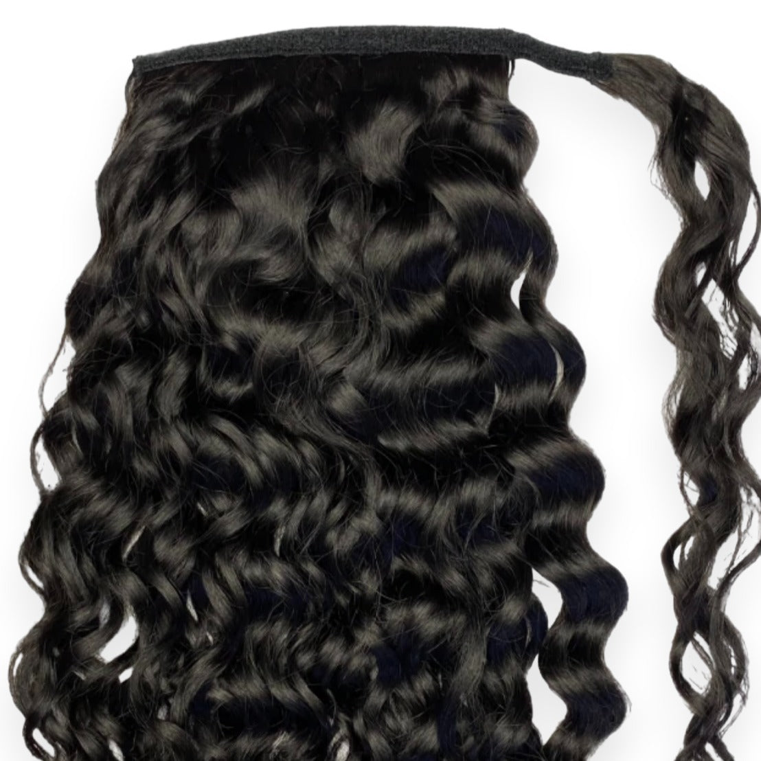 The POSH PONYTAILS comes with a velcro base, which adheres together to secure the ponytail. Also, it has a long strand of hair that is used to wrap around the base with 2 matching bobby pins (which are included) to ensure a seamless blend.
