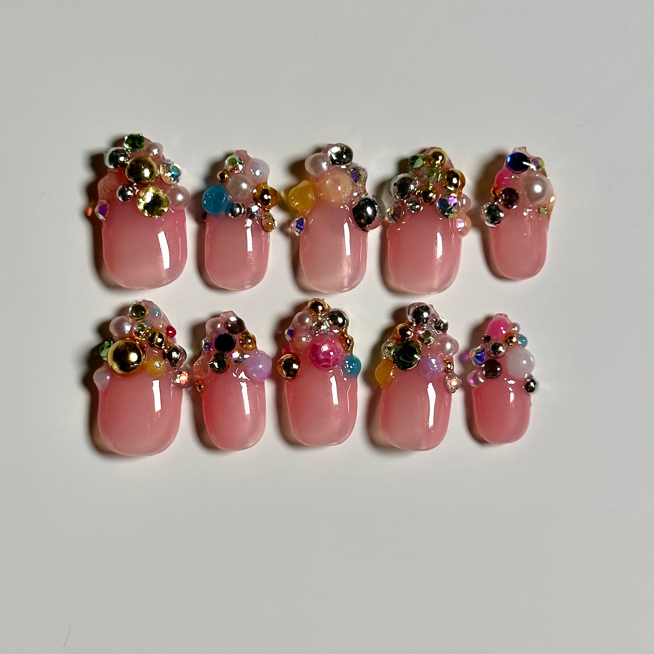These nails will arrive freshly made in 3-5 business days! Ready to go upon delivery, they're waterproof, smudge-proof, and require no drying time. Plus, they last up to a week without needing polish and won't damage your natural nails! Each set comes with 20 fake nails, pink gel nail glue, a mini file, and an alcohol pad.
