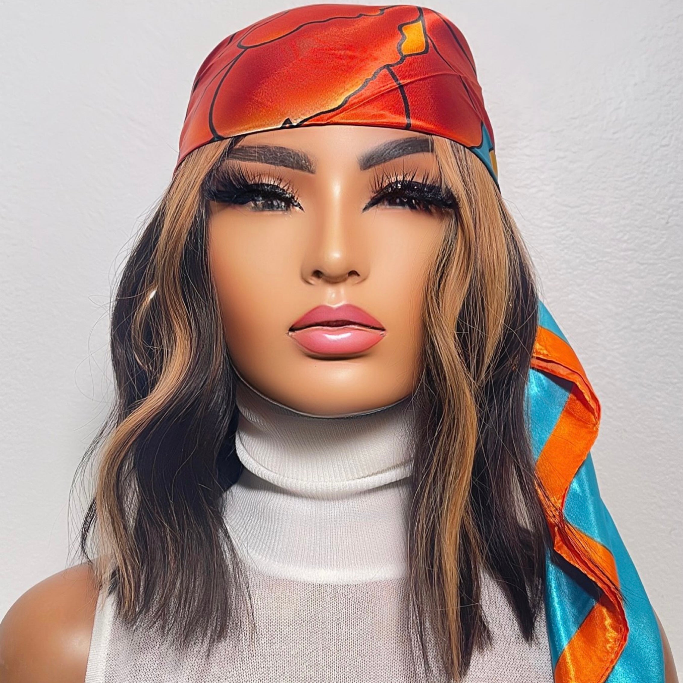 This luxury head scarf is sure to make a statement wherever you go. Its color palette captures everything that there is to love about fall with its burnt oranges, dark blues and splashes of gold. It can be styled as a head wrap, neck scarf or even as a pop of color on your wrist – keeping you comfortable and stylish at the same time. Stand out this fall when wearing this unique, limited edition scarf that is sure to last a lifetime with proper care.