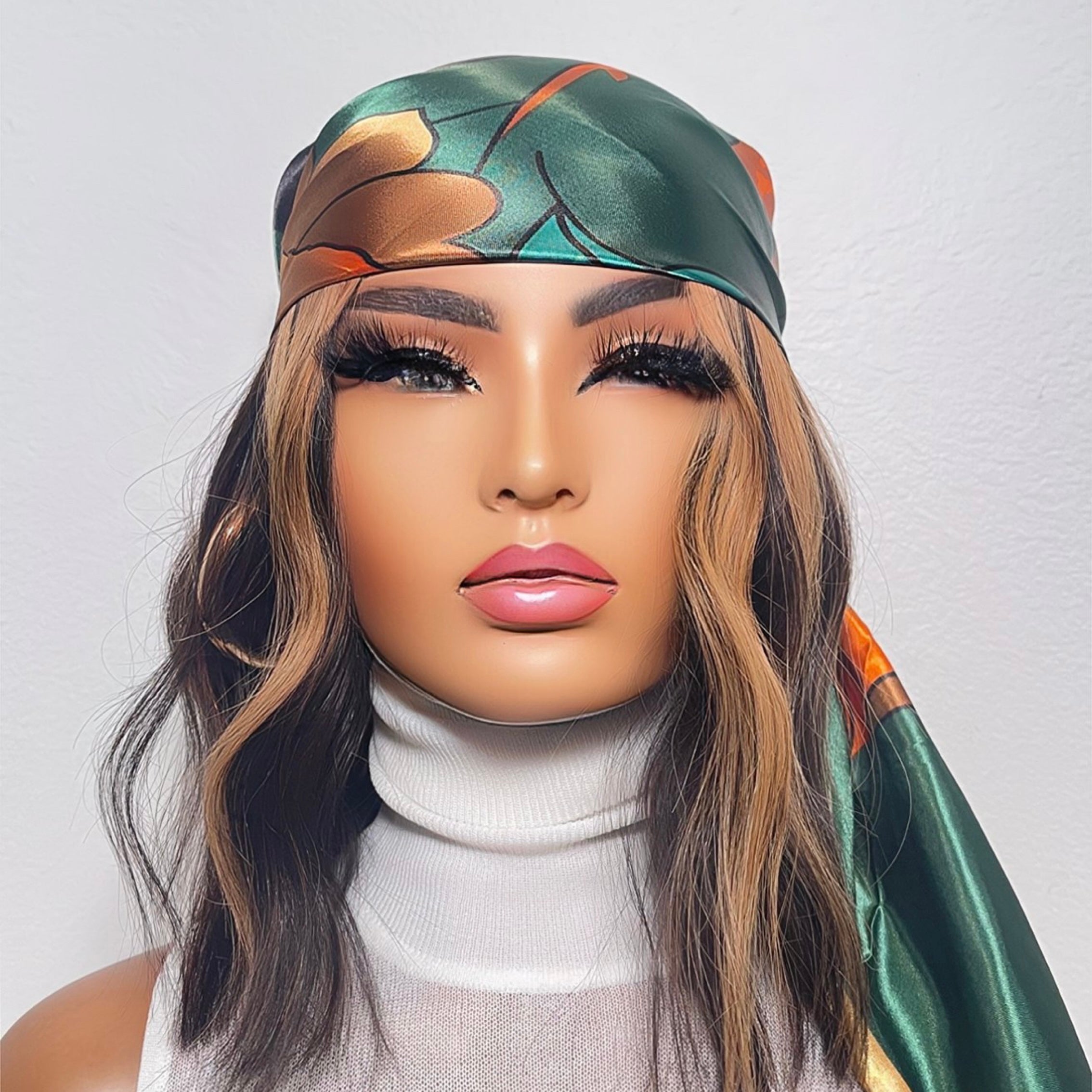 This luxury head scarf is sure to make a statement wherever you go. Its color palette captures everything that there is to love about fall with its burnt oranges, dark blues and splashes of gold. It can be styled as a head wrap, neck scarf or even as a pop of color on your wrist – keeping you comfortable and stylish at the same time. Stand out this fall when wearing this unique, limited edition scarf that is sure to last a lifetime with proper care.