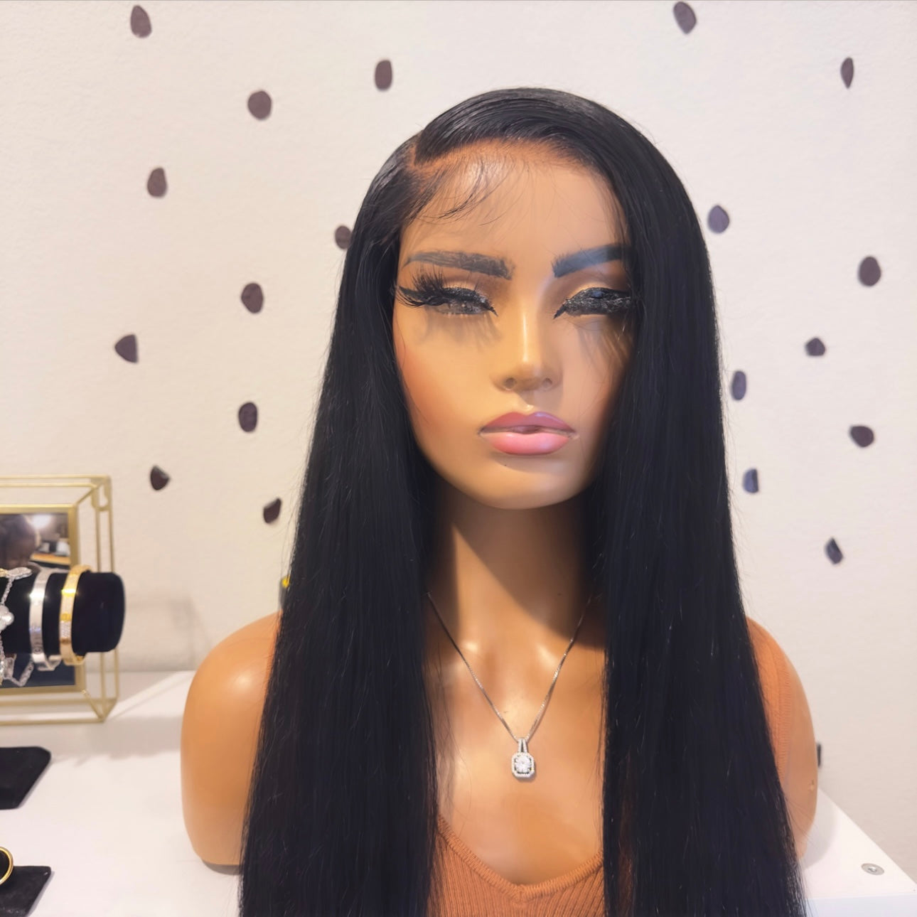 Experience convenience and quality with our 24"5x5 HD closure wig, expertly constructed, pre-customized, and professionally styled. This machine wefted unit is completely glue less and features a breathable cap with drawstring, adjustable straps, and combs for maximum security. Designed to be instantly flawless, it needs no extra customization. Slip it on and step out in your PLC Duster with confidence.